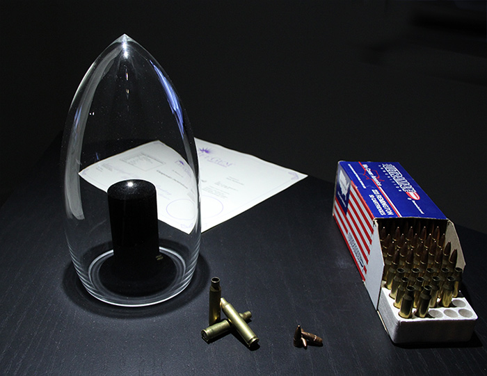 a diamond manufactured from the carbon found in .223 Caliber Remington assault rifle ammunition.